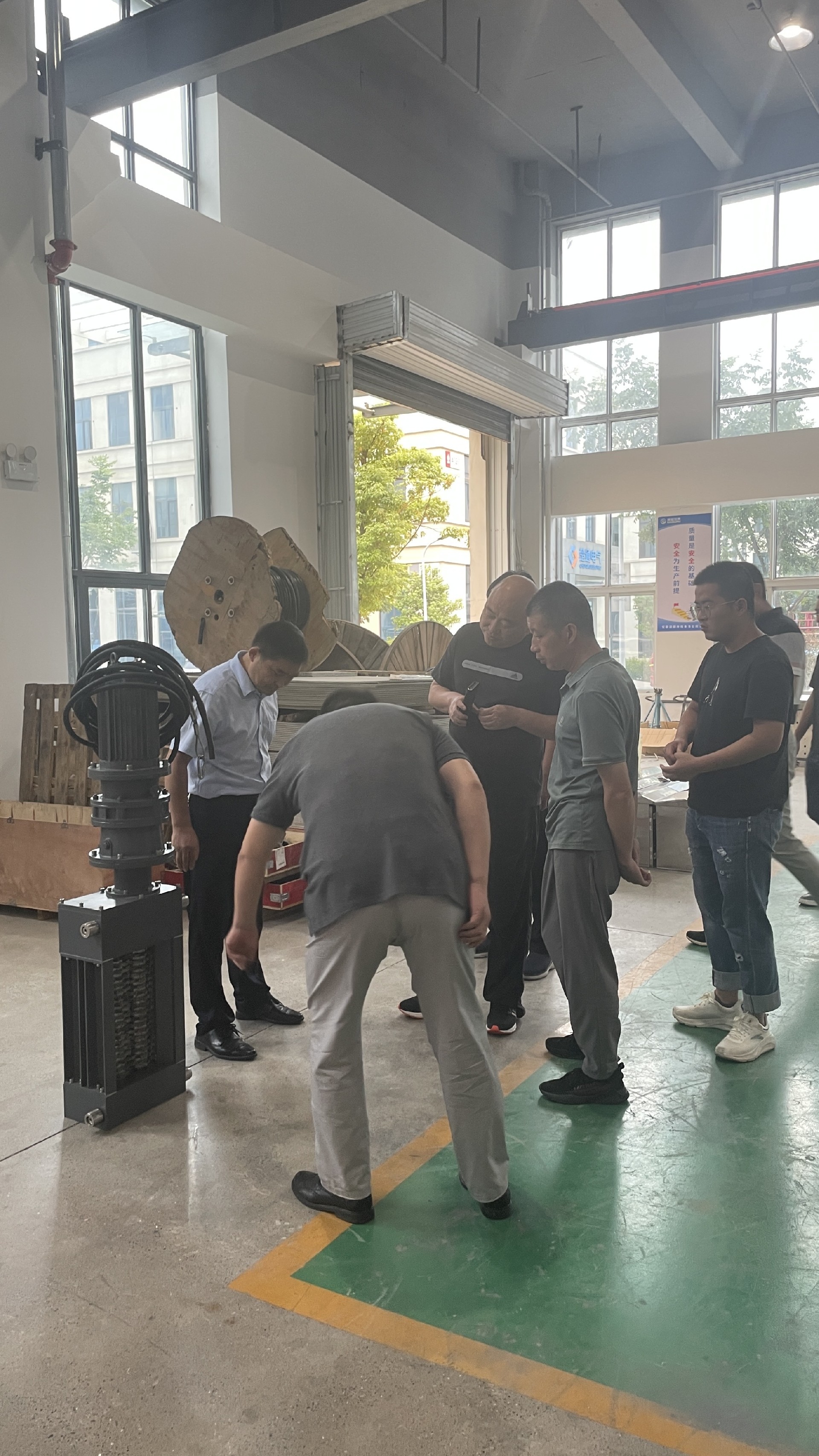 在生产车间, 万总等领导们逐一观察看了高低压柜、水泵、格栅等系列产品,仔细询问各产品的生产流程、工艺特点等,*了解我司生产规模、产品质量及售后服务情况;